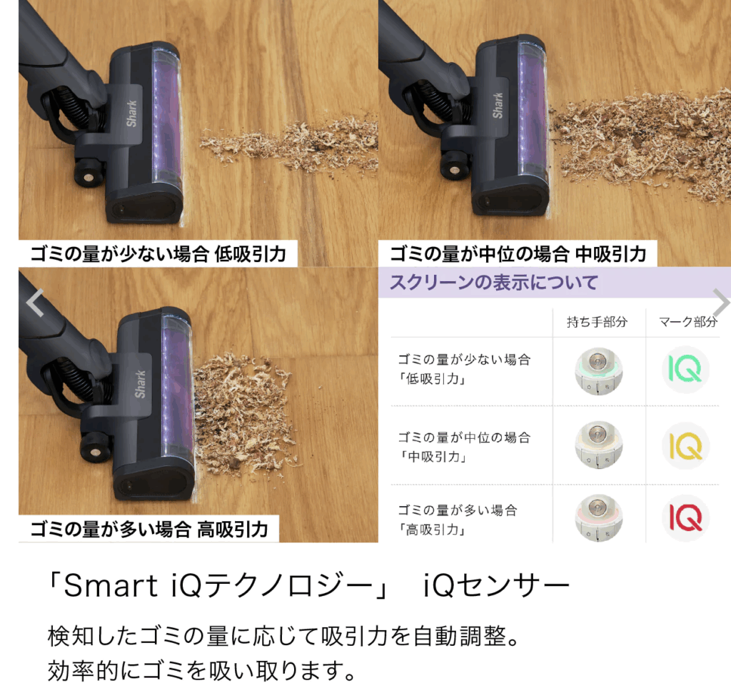 また、上記写真のようにゴミの量に応じて、スクリーンの表示が自動に変わるのです!