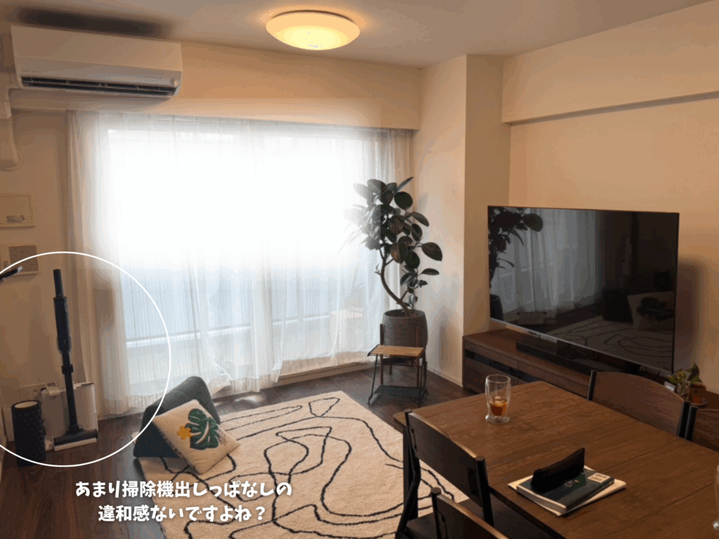 一回一回しまうとズボラな私はめんどくさくて掃除機かける頻度が減るなと思い、リビングに出しておいても違和感のないデザインを求めてました!